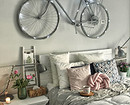 Одна из проблем небольших пространств — далеко не все творческие идеи можно реализовать в их рамках. Но хозяйка этой спальни вышла из положения просто и элегантно. Она сделала старый велосипед украшением изголовья кровати!
