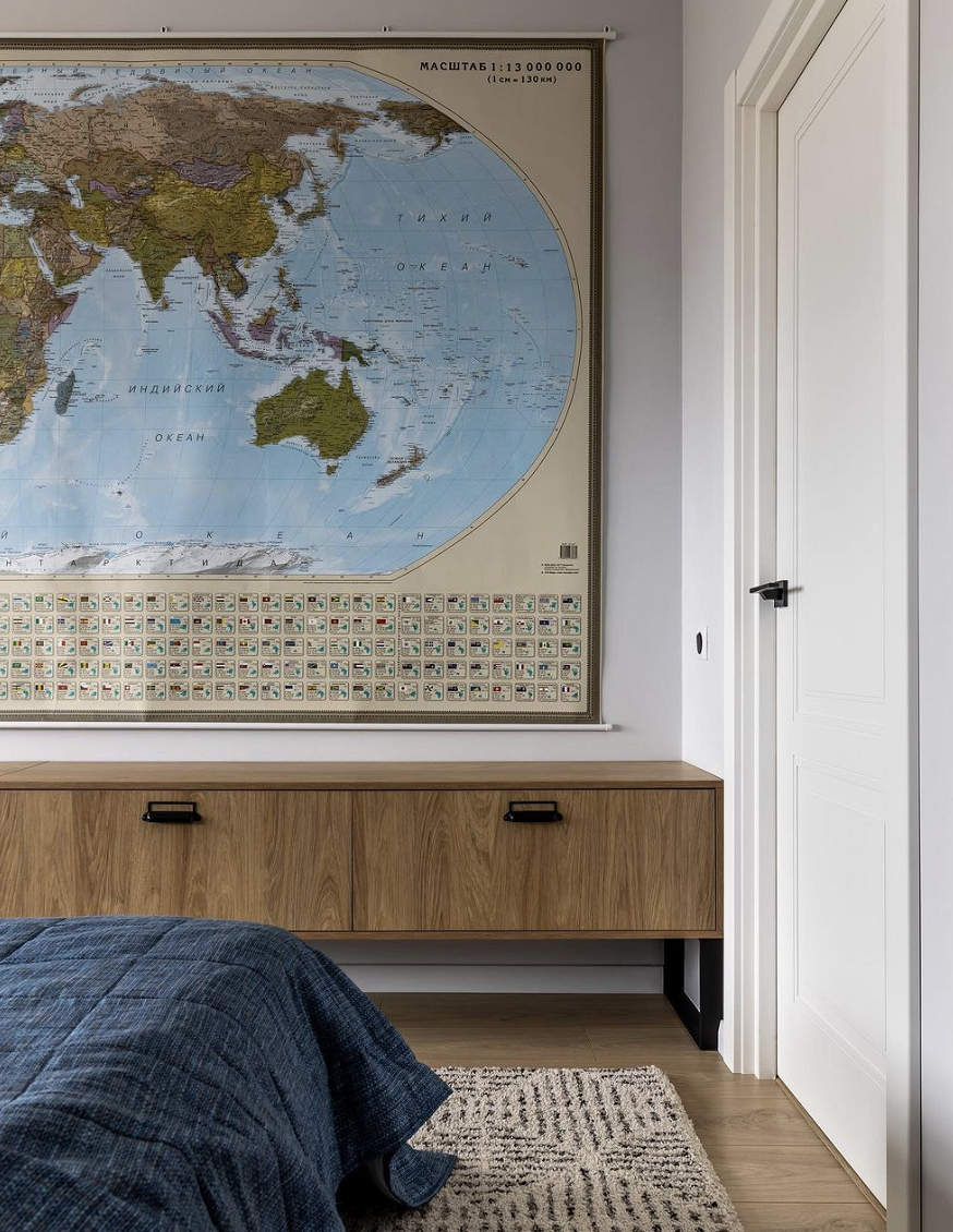 В скандинавских квартирах практически всегда ставят небольшой комод для белья в спальню.