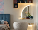 Небольшую консоль можно поставить в углу комнаты или вместо одной из прикроватных тумб. Если у окна есть подоконник подходящей высоты, организуйте рабочее место на нем. Важно предусмотреть правильное освещение: поставьте на стол лампу, свет должен падать с левой стороны. Письменный стол одновременно можно использовать в качестве туалетного столика, если повесить над ним зеркало. Если есть выход на балкон, то подумайте над обустройством домашнего офиса там.