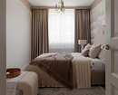 Кровать лучше располагать изголовьем у стены, а не у окна. Можно сэкономить место и придвинуть кровать к стенке, но это не слишком удобно, к тому же нарушается симметрия интерьера. Оставьте по обеим сторонам проходы достаточного размера. Эргономика очень важна! Также психологически комфортнее, когда спальное место находится не напротив дверного проема.