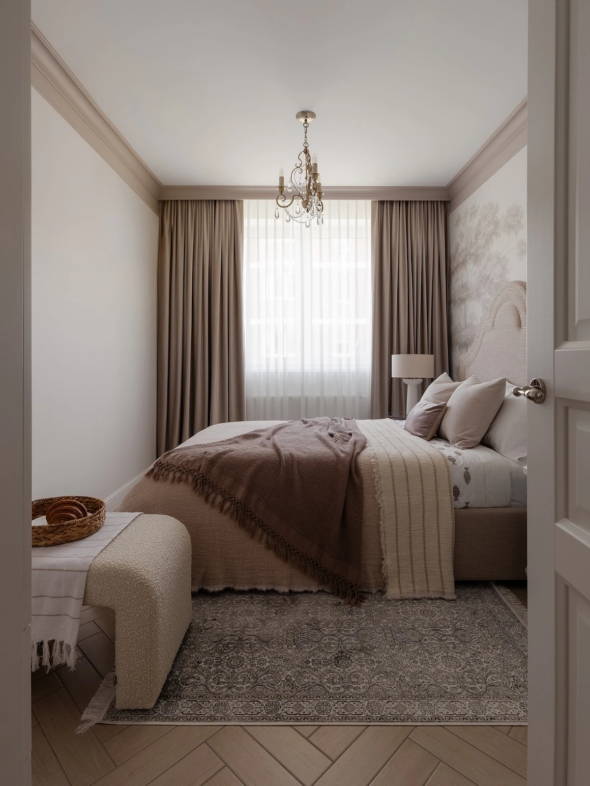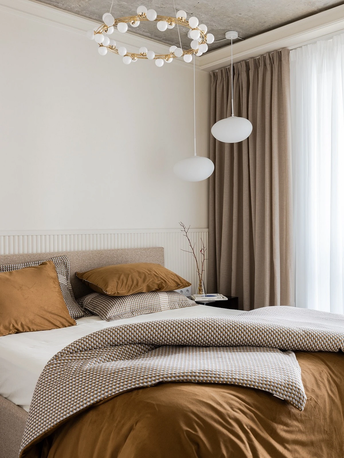 Декор играет в спальне особую роль. Он придает ей завершенность, расставляет акценты и отвечает за атмосферу. Поскольку площадь не такая большая, важно не переборщить с аксессуарами.