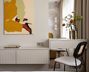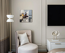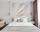 Классическое правило декорирования предполагает соразмерность: предметы подбирают с учетом площади комнаты. Но сейчас от этого принципа можно отступить и выбрать для спальни любой площади одну крупную картину. Интерьер будет выстраиваться вокруг нее: стиль, цветовая гамма, иногда даже композиция. Чем меньше комната, тем сдержаннее должен быть арт-объект, чтобы не перегрузить ее.