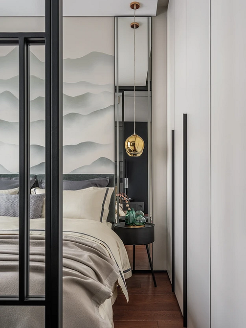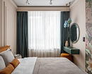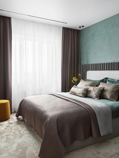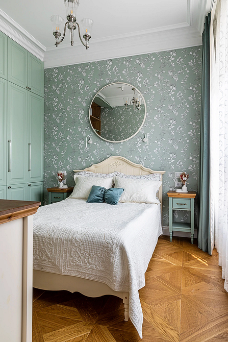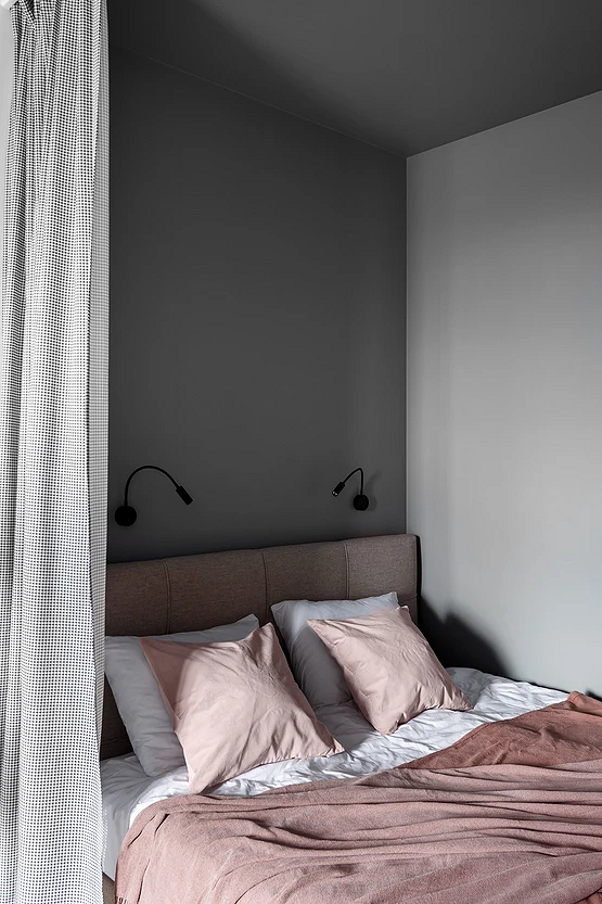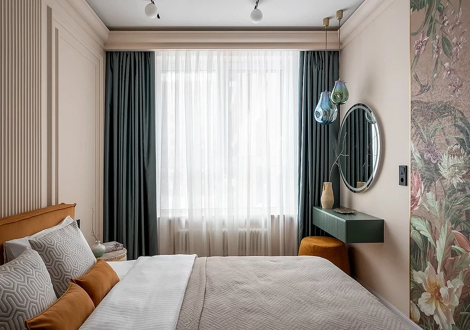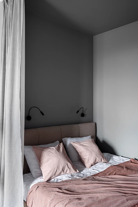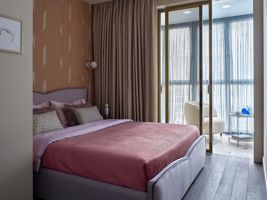 Если же пространство ограничено (например, в студии или типовой однушке), важно отделить спальное место стеклянной перегородкой, ширмой, плотной непрозрачной шторой. Это помогает сохранить ощущение уединения и покоя.