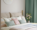 К светло-зеленым оттенкам относятся шалфейный, мятный, матча, фисташковый и т.п. Они успокаивают взгляд, гармонично сочетаются с деревом, камнем и другими натуральными фактурами. Это хорошая альтернатива привычной базе (серый, белый), если вы хотите создать нейтральный, но при этом небанальный интерьер.