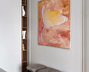 Важен и сюжет картины. Для спальни подходят спокойные природные сюжеты, акварельные наброски и абстракция. С портретами нужно быть осторожными: если полотно будет не за изголовьем кровати, а по траектории взгляда: не всем комфортно видеть чужие лица в темноте, особенно в таком масштабе.