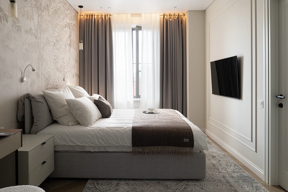 Мобильность планировки характерна для современных интерьеров, особенно в маленьких квартирах, но в 2026-м дизайн спальни как комнаты с несколькими функциями уходит на второй план. Она больше не совмещает функции кабинета, гостиной или детской, а становится местом полного расслабления, где ничто не мешает, не отвлекает внимание и не занимает мысли.