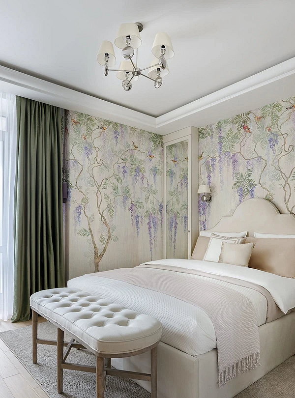 Дизайн спальни в 2026-м строится на идее сдержанности. Палитра становится спокойнее, а выразительность достигается за счет фактур. В том числе это касается отделки стен. Можно выбрать: