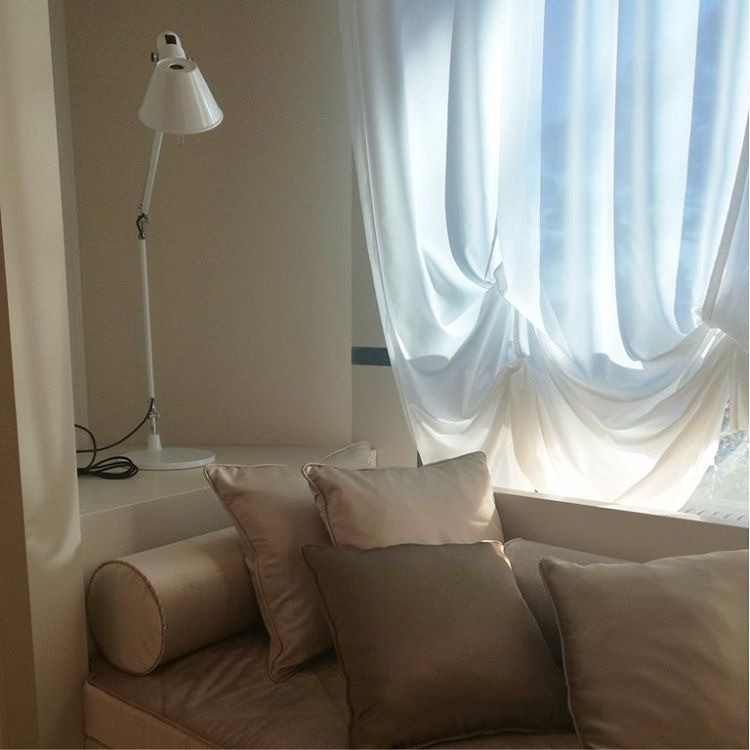 Верх и середина у них действительно самые обычные. Карниз, иногда — ламбрекен и тонкий тюль в комплекте. Вот только нижний край доходит лишь до подоконника или немного прикрывает его. Лучше всего подобный дизайн смотрится, если место у окна чем-то занято. Например, мебелью или батареей — открытой либо замаскированной сделанными на заказ фасадами. В противном случае общий вид может казаться незаконченным. Также это решение хорошо подходит для планировок, где кровать стоит изголовьем к окну.