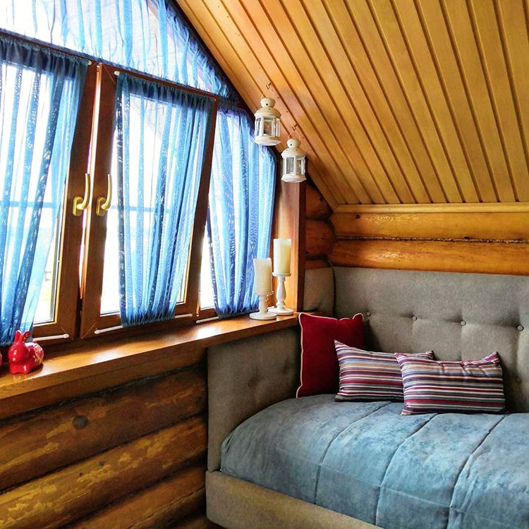 Часто прозрачные короткие занавески на окна в спальне дополняют плотными рулонными полотнами, чтобы блокировать свет и посторонние взгляды. Днем, когда тюль собран, окно выглядит уютно и в то же время воздушно. Классические занавески с вышивкой подойдут для интерьеров в стиле кантри, шебби-шик, винтаж. Их же часто выбирают для дачного домика.