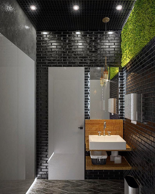 Идея, которая не могла бы появиться в прошлом веке, но становится все более трендовой в наши дни, — смесь лофта и экостиля. На фоне темной плитки и бетонных стен в гостиных и ванных размещают вертикальное озеленение. На деревянные ящики, играющие роль кофейных столиков, ставят горшки с живыми растениями, а в мебели и отделке используют все больше дерева. Сюда же можно отнести предметы обстановки из переработанного пластика, экологически безопасные отделочные материалы, энергосберегающую технику и освещение — все это не бросается в глаза, но все равно влияет на изначальное понимание стиля.