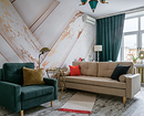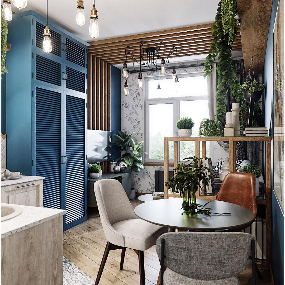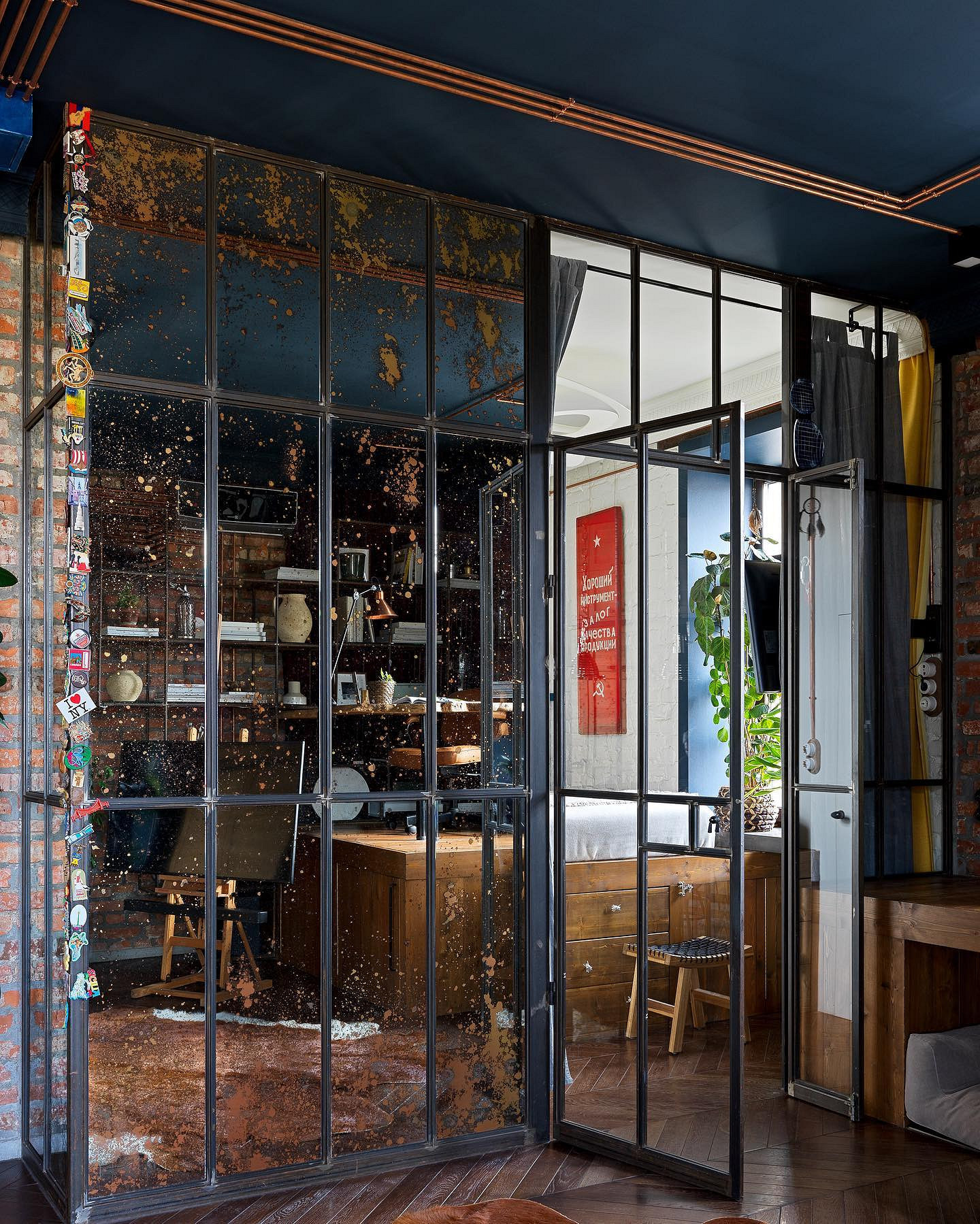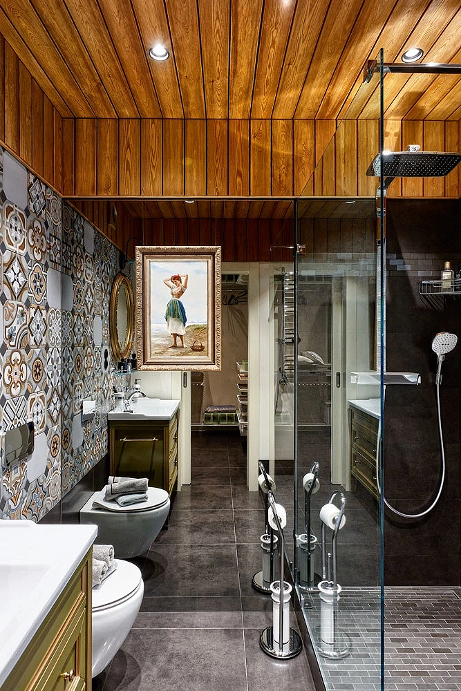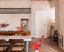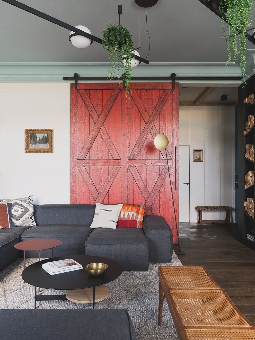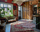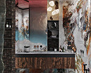 При всей эксцентричности такой комбинации пространство получается довольно практичным. Оформление по своему настроению напоминает лофт: требует просторного помещения и минимум мебели, оставляя много воздуха и свободного пространства.