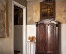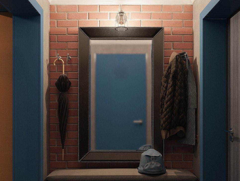 Мебель в прихожей в основном представлена системами хранения. В отличие от минимализма, тяготеющего к закрытым конструкциям, в гранжевом интерьере уместны открытые вешалки, полки, пегборды. Их дополняют металлическими или стеклянными консолями, зеркалом в состаренной или просто массивной раме. Для мелочей можно поставить плетеную корзину или деревянный ящик.