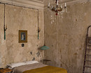 Раковину можно установить на деревянную консоль или тумбу с металлическими деталями. Зеркало — с патиной или без рамы, их дополняют лампами на шнуре или бра. Главное — не переусердствовать: в санузле гранж должен сочетаться с удобством и гигиеничностью.