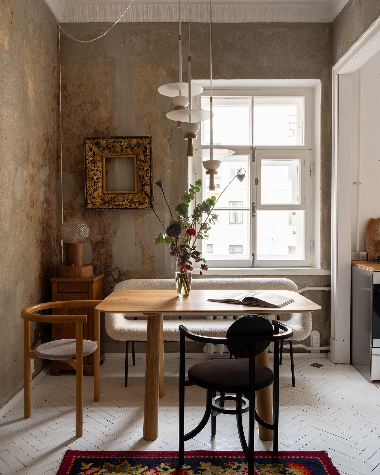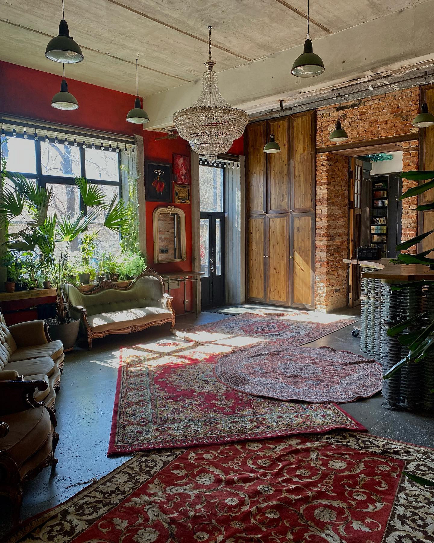 Бохо и гранж тоже хорошо сочетаются: много текстиля, предметы с блошиных рынков и декор ручной работы органично вписываются в общую концепцию дерзкого и свободного интерьера. Самый неожиданный дуэт получается с неоклассикой: грубая отделка и элегантные формы мебели работают на контрасте, дополняя и оттеняя друг друга.