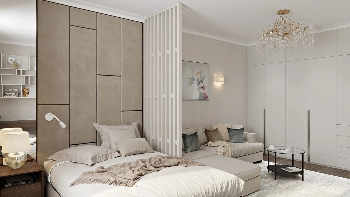 Скандинавский стиль в интерьере спальни — выбор тех, кто хочет легко засыпать и качественно высыпаться. Неброские тона оформления успокаивают и снимают стресс, экологичная мебель не выделяет в воздух вредных веществ, а значит, сон будет здоровым и крепким. Важный плюс такого спального места в том, что оно не требует идеального порядка: сканди вполне допускает небрежно брошенное одеяло и раскиданные по нему подушки, так что по утрам не придется второпях заправлять постель.