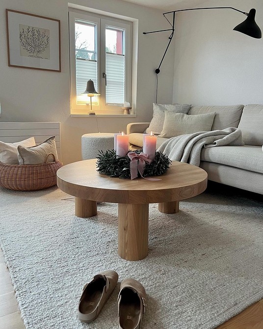 - Хюгге. Это концепция максимального комфорта. Мохнатые шкуры на полу и на диванах, толстые пушистые пледы, в которые хочется закутаться, пока на улице метет метель, теплые цвета отделки и зажженные свечи — все это хюгге. Здесь нет строгих ограничений по количеству декора: его должно быть столько, сколько нужно вам для ощущения обволакивающей заботы и защищенности.
