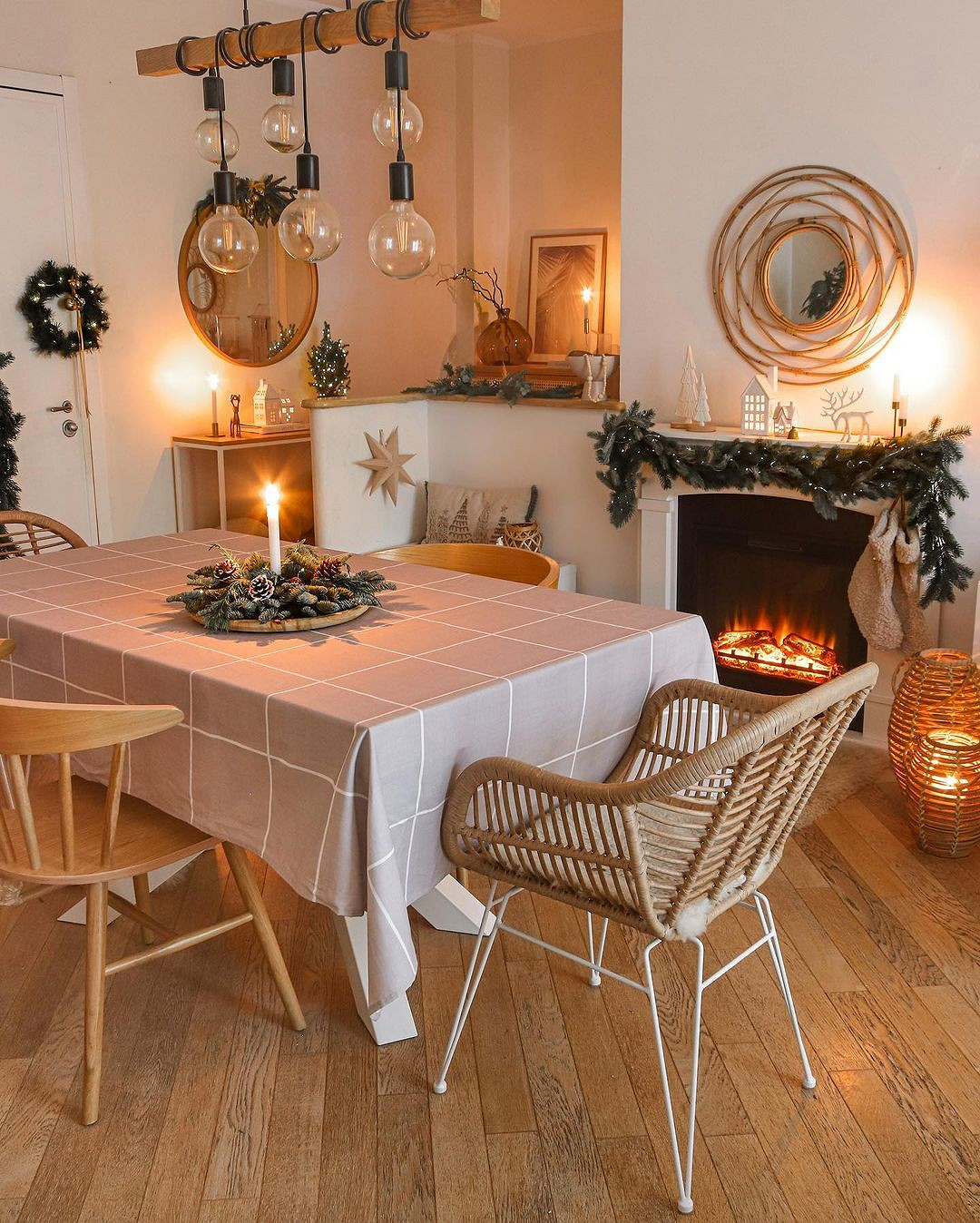 Как можно увидеть на фото, скандинавский стиль в интерьере квартиры включает в себя декорирование бумажными поделками: скандинавскими звездами или полигональными фигурами.