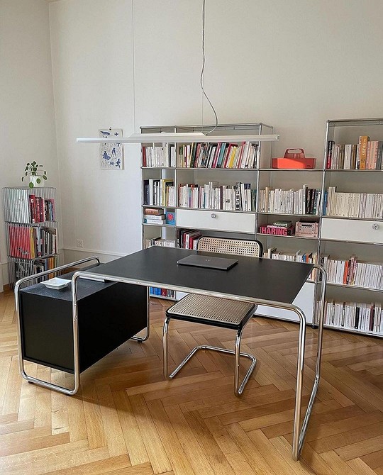 Обставляя дом в этом стиле, не забудьте о культовых вещах: стулья Eiffel и Ghost, кресла Swan или Egg, диван Barcelona. Давно примелькавшиеся офисные стулья на изогнутых С-образных металлических ножках (модель называется Brno)— это тоже дань баухаусу.