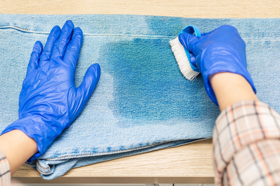 Берут светлую однотонную ветошь, складывают в несколько раз, укладывают под пятно. Аккуратно обрабатывают его выбранным средством так, чтобы растворяющаяся грязь впитывалась в ветошь. После чистки вещь стирают. Небольшие свежие пятна можно попытаться очистить сливочным маслом или молоком. Их втирают в пятно, очищают грязную массу, повторно втирают и так до тех пор, пока не очистится вся грязь.