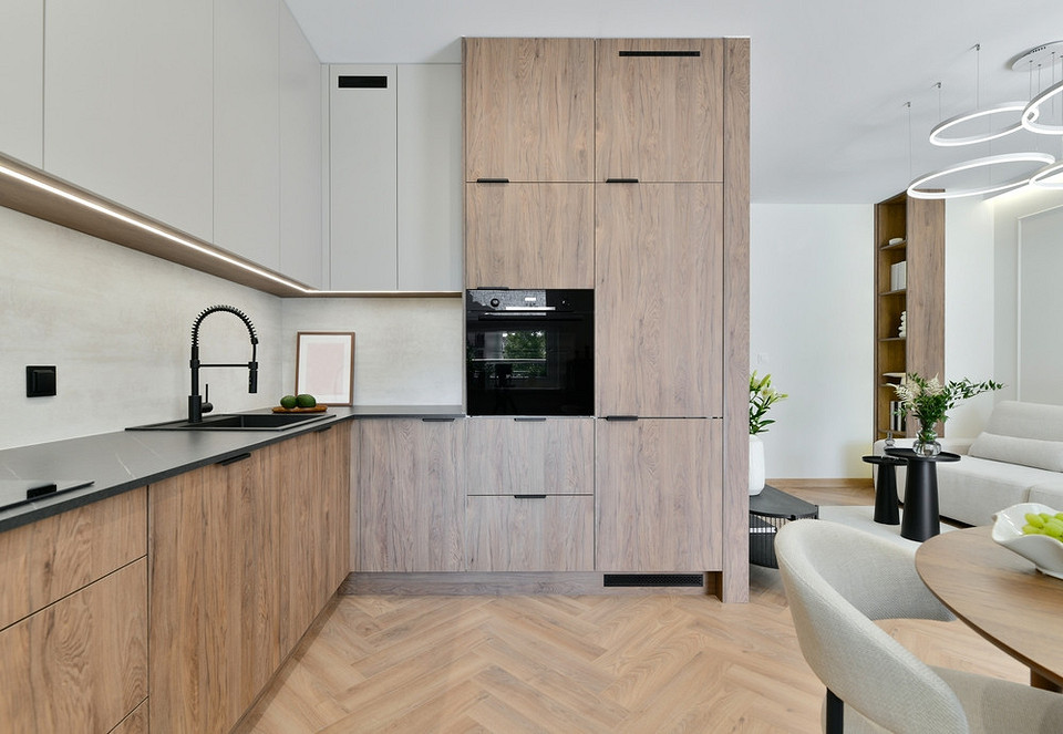 Чем больше в отделке стыков и швов, тем быстрее они собирают грязь. Это касается плитки, кухонных фартуков, напольных покрытий и даже мебели. Крупноформатные материалы, цельные столешницы и минимум соединений ощутимо упрощают жизнь. Их легче протирать, а загрязнения не скапливаются в труднодоступных местах. В результате вы тратите на уборку меньше времени и сил.