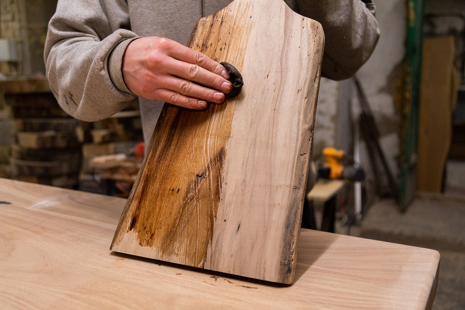 Если же планируется обработка маслом разделочной доски из дерева, которой активно пользовались, то надо вернуть ей красивый и аккуратный вид.