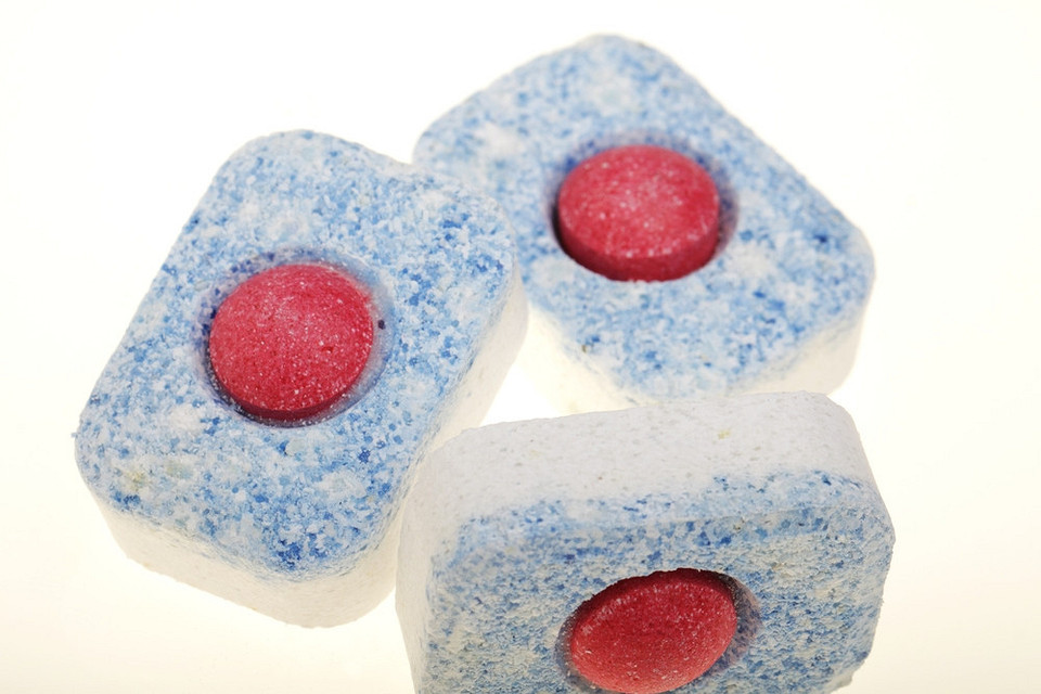 Эффективное средство от нагара, но его нежелательно часто использовать, чтобы не испортить металл. Оптимально применять в самых сложных случаях. Нагар заливают водой так, чтобы он был покрыт ею на 2-3 см. Кладут в воду любую таблетку для посудомойки, нагревают жидкость до кипения, кипятят 35-40 минут. Дают остыть, потом промывают и тщательно ополаскивают.