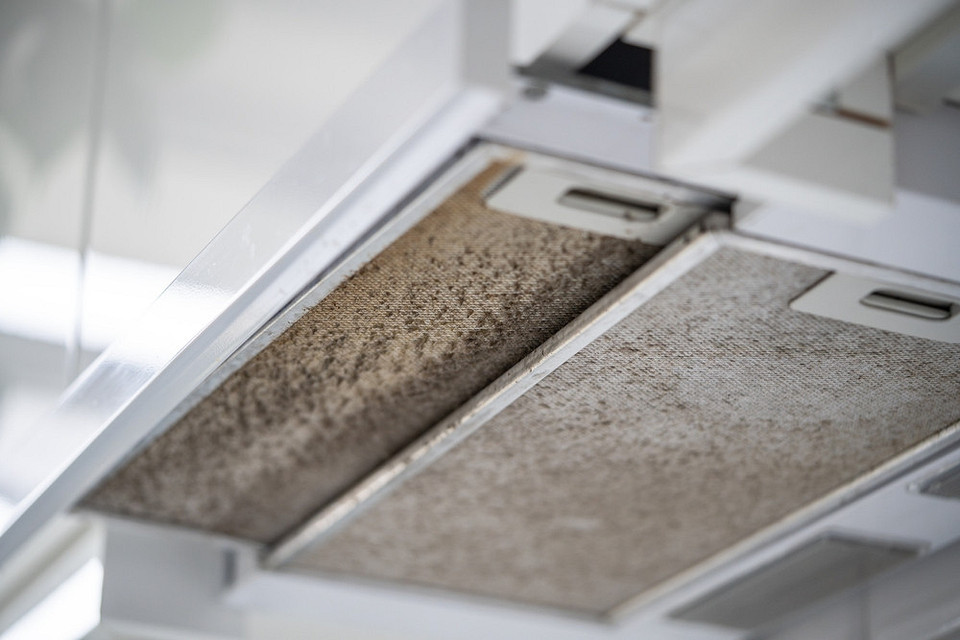 Вместе с воздушным потоком вытяжка всасывает капельки жира и копоть. Они оседают на внутренних и внешних элементах вытяжки, постепенно накапливаются, формируется липкий темный налет. Он выглядит очень неопрятно, портит вид техники. Но это не единственная и не основная причина, по которой нужно мыть вытяжное оборудование.