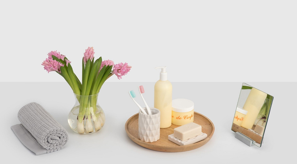 Удивлены последнему пункту? Объясним. Дело в том, что различные мелочи, поставленные на поднос, создают ощущение декоративной композиции. Так что, если бутыльки, банные принадлежности и другие вещицы не влезли в коробки, шкафы и ящики, используйте этот лайфхак для преображения ванной.