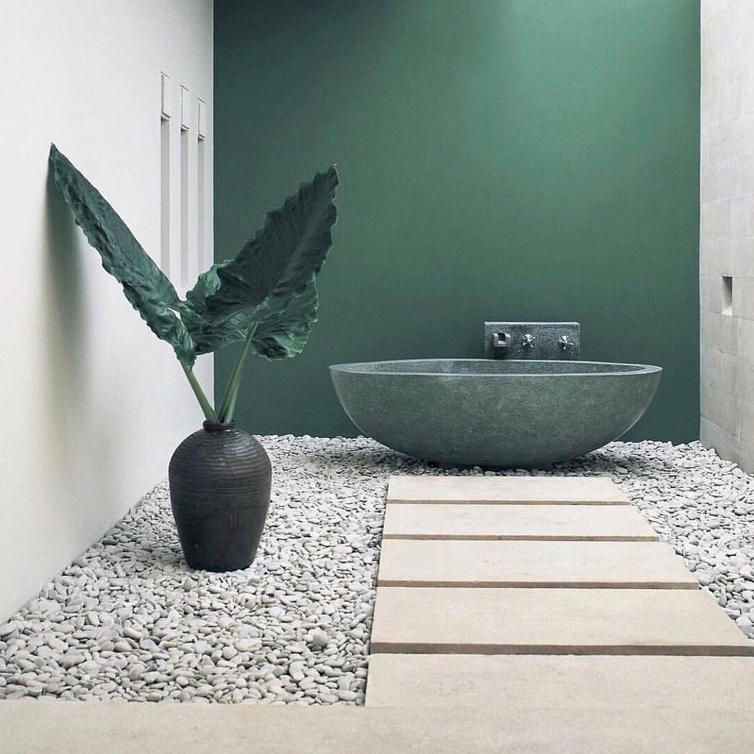 А как насчет сантехники в природном зеленом цвете? Обратите внимание, насколько гармонично смотрится такой ход в интерьере: с одной стороны, обстановка не лишена ярких акцентов, с другой, смотрится это решение весьма ненавязчиво.