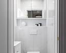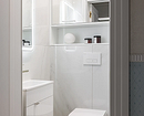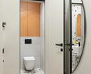 - Если над унитазом есть ниша, используйте ее для хранения хозяйственных принадлежностей и мелочей. В галерее показываем примеры, как может выглядеть дизайн туалета со шкафчиком в квартире.