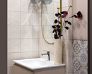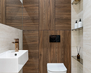 Центральное место в интерьере маленького санузла занимает отделка, поскольку мебели и сантехники здесь минимум.