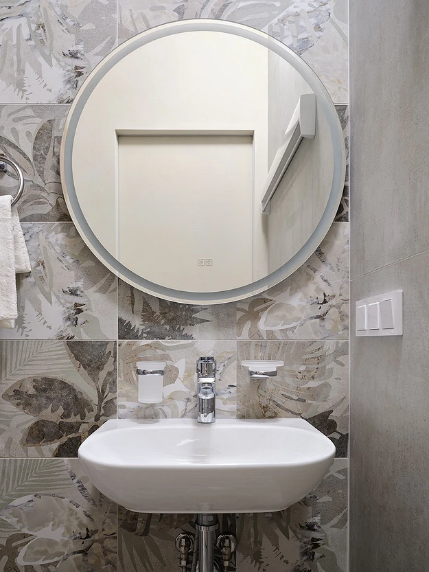 Если есть раковина, повесьте небольшое зеркало: оно будет отражать свет и зрительно сделает пространство более просторным.