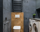 - Помните про баланс. Если вы выбрали яркую плитку, особенно с рисунком, или акцентную сантехнику, большое количество декора перегрузит маленькое пространство. Чем активнее основное оформление, тем проще должны быть аксессуары. И в меньшем количестве.