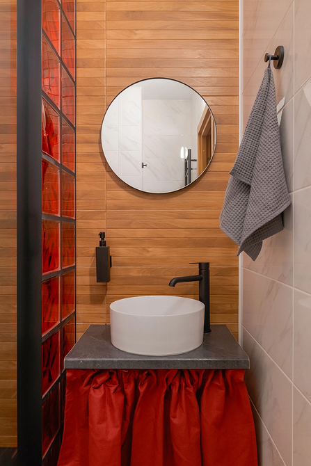 Текстиль добавляет любому интерьеру уюта, поэтому используйте его и в оформлении ванной комнаты. Только подбирайте такие ткани, которые не будут постоянно отсыревать или вообще испортятся от нахождения во влажной среде.
