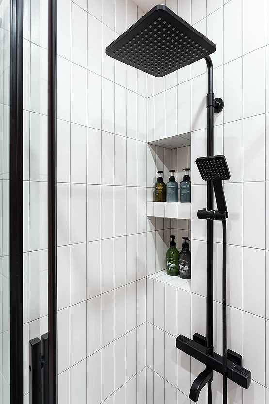 - Ванная — мокрая зона с постоянными перепадами температур, образованием пара и конденсата. Поэтому все, что здесь находится, должно быть из материалов, которые не боятся влаги или даже прямого контакта с водой. Иначе вещи либо испортятся, либо со временем станут рассадниками плесени, неприятного запаха.