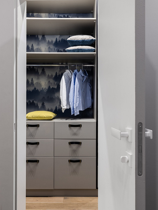 Там, где шкафы все же есть — прихожая, кабинеты — они встроены и подобраны в стилистике интерьера.