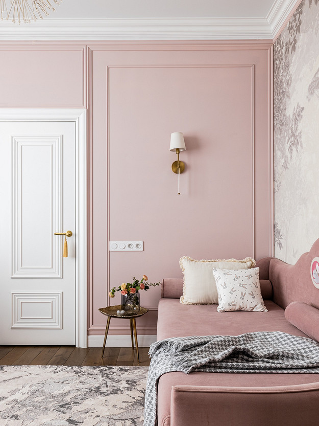 Детские комнаты оформлены в любимой гамме своих обладателей. У девочки — маленькой творческой личности — преобладают пастельно-розовые цвета.