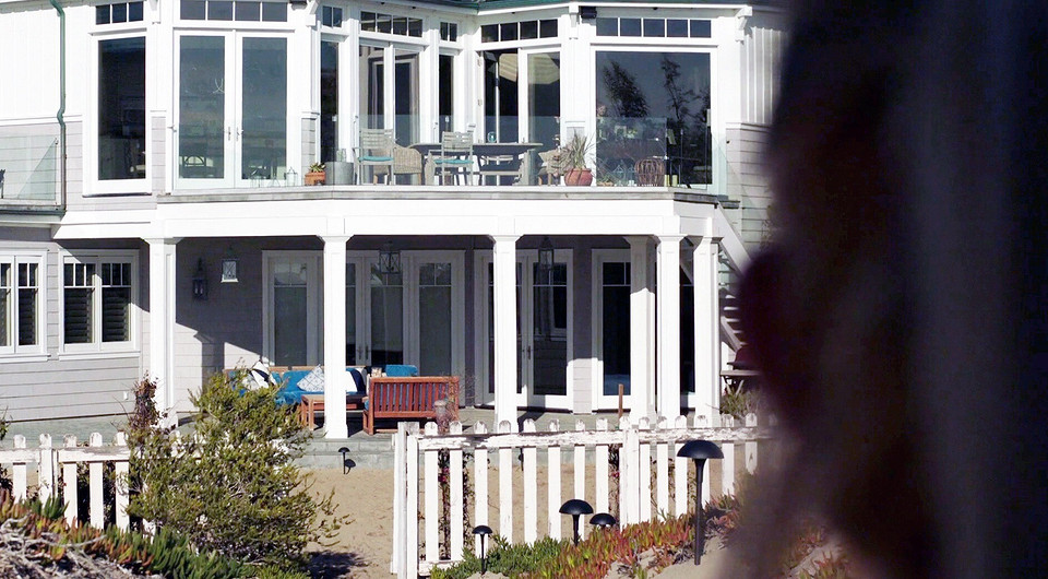 Это единственный особняк, снятый в самом городке Монтерей, в котором происходит действие фильма. В этом доме показывают много комнат: прихожую, гостиную, кухню, гардеробную, спальню, ванную комнату, террасу. В конструкции здания много стекла. Свет пропускают огромные панорамные окна, широкие стеклянные двери, для единения с природой в интерьере отсутствуют шторы. Этот дом — образец минималистского упорядоченного современного эко-дизайна. В нем много света, воздуха, пространства, которое не загромождено мебелью, декором и деталями.