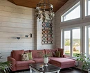 Такой интерьер внутри дома из бруса сочетает деревенскую романтику и крестьянскую брутальность. Тяжелые потертые балки на потолке соседствуют с цветочками на легких занавесках и мебельной обивке, а нежные пасторальные акварели висят на стене из необработанных шероховатых досок. Единственное, чего не терпит эта концепция, — современные гаджеты и электроприборы. Всю кухонную технику придется спрятать за фасадами шкафов, а из комнат убрать компьютеры и ноутбуки, оставив только телевизор и минимум самых необходимых устройств.
