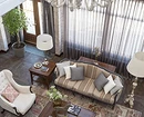 Обивка мягкой мебели не должна быть синтетической и аляповатой. В остальном ограничений нет — это может быть как тонкий шелк со сложным узором, так и грубая рогожка, главное, чтобы ткань была натуральной (хлопок, кожа, шерсть, лен и т.д.), а рисунок ненавязчивым.