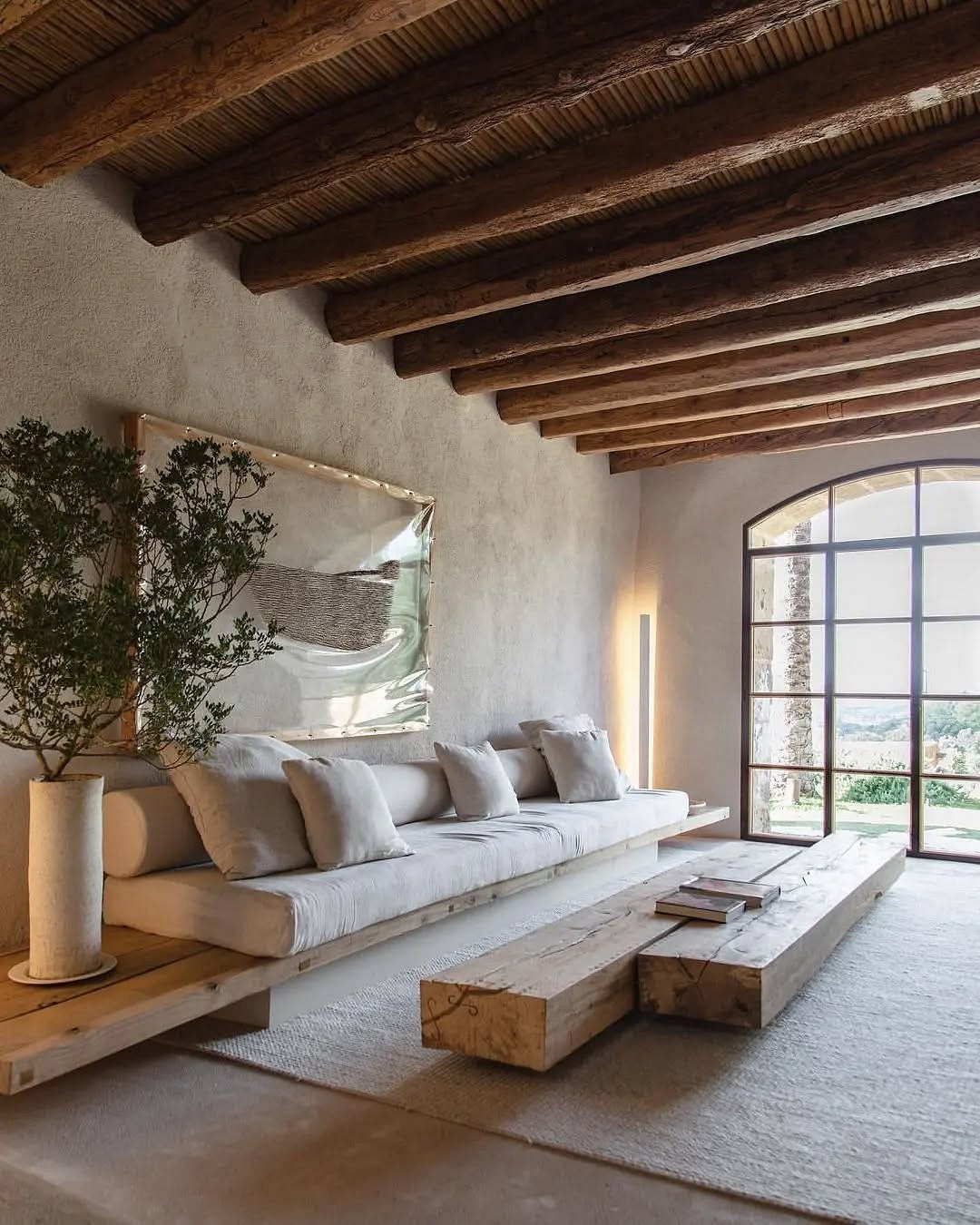 Поскольку дерево само по себе притягивает внимание, количество мебели в комнате должно быть ограниченным, чтобы не перегружать дизайн. Кроме того, сама она также не должна быть сильно декорирована, иначе высок риск создать визуальный шум. Если такая обстановка кажется слишком спартанской, смягчить ее и сделать более уютной помогут пушистые ковры, мягкие пледы и другой домашний текстиль.