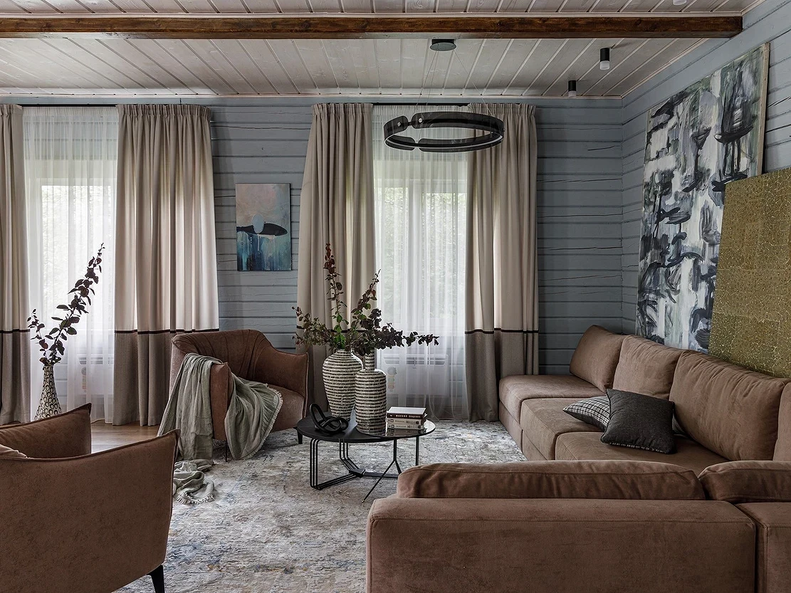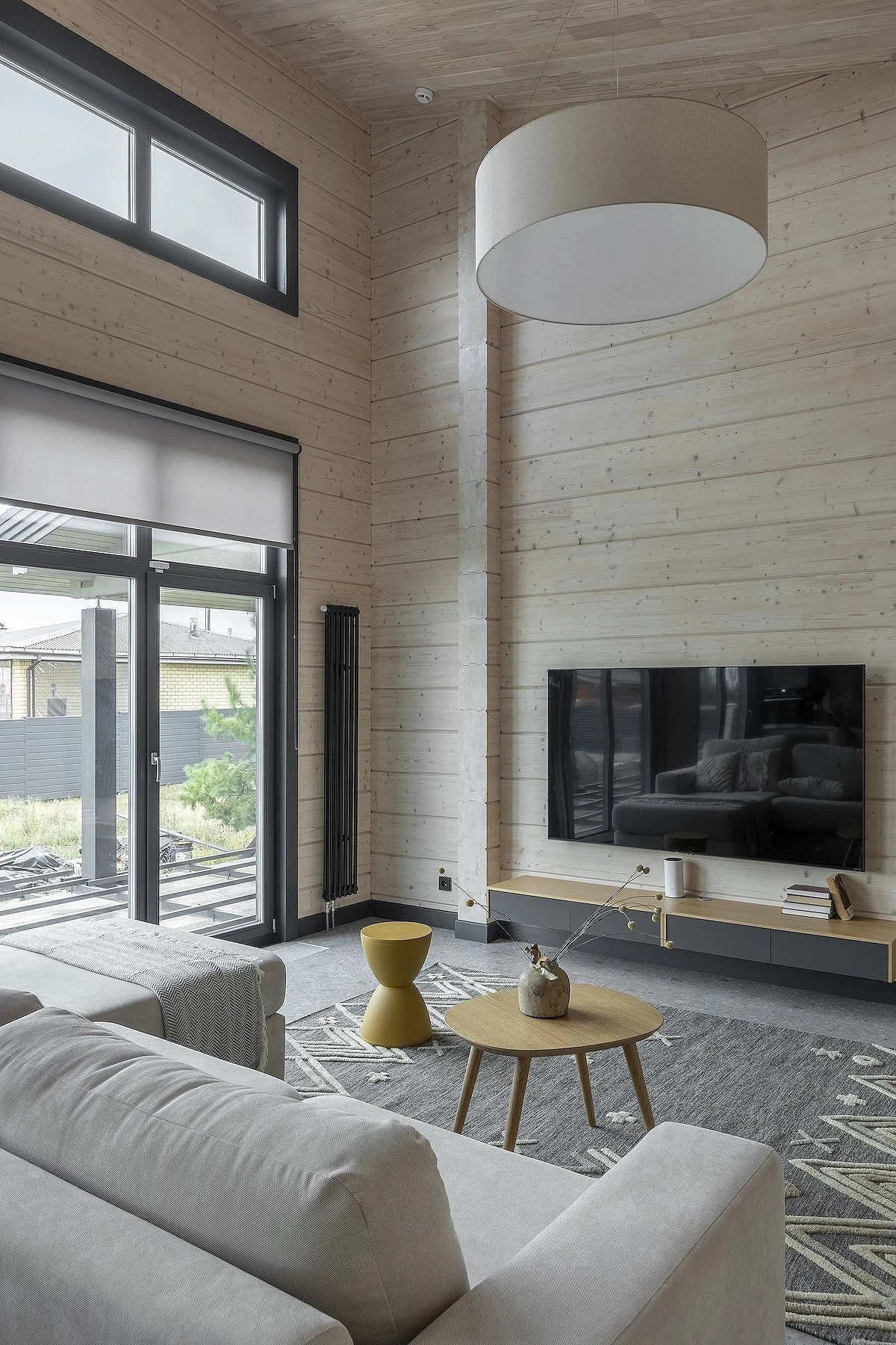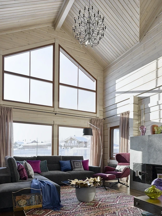 Комната для приема гостей и времяпрепровождения всей семьи — главная в загородном доме. И от того, насколько продуман ее дизайн, зависит очень многое. Рассказываем, какой должна быть гостиная в деревянном доме, чтобы в ней было приятно находиться. Делимся советами, как подчеркнуть природную эстетику дерева и не превратить пространство в лубочное и нарочито деревенское.