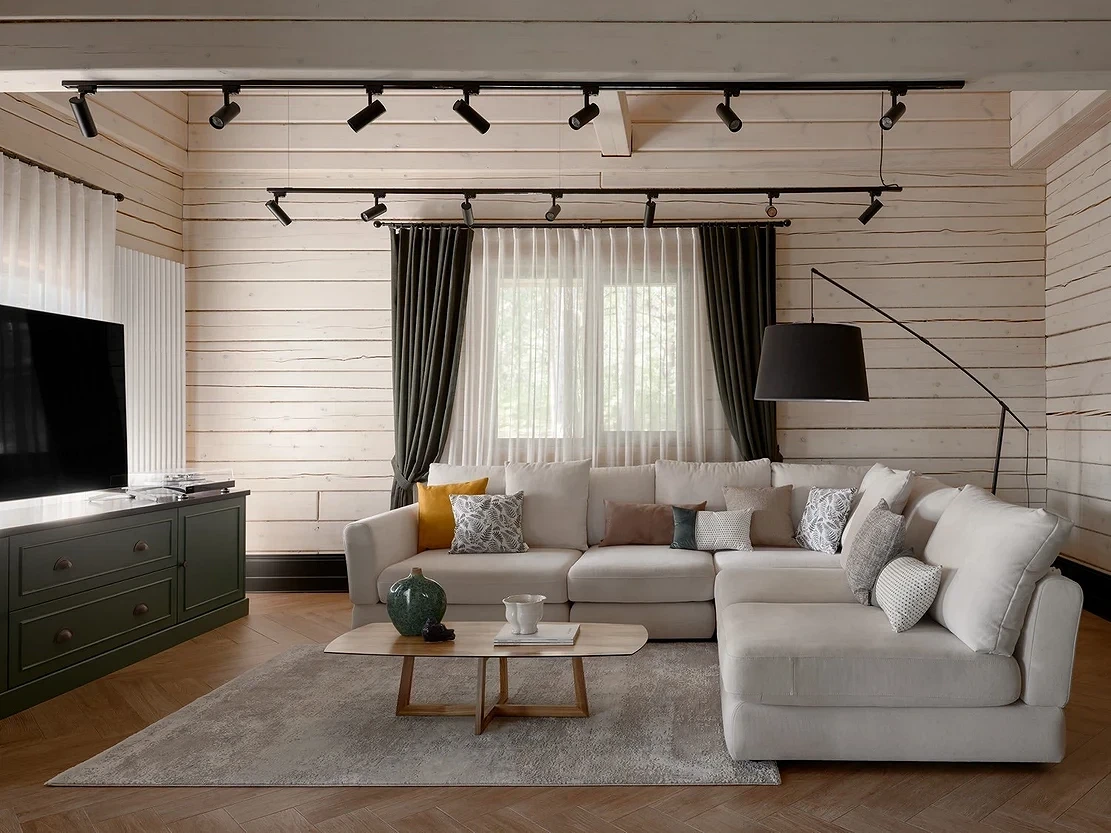 И все же есть общие моменты, которые объединяют декор для гостиной в деревянном доме.