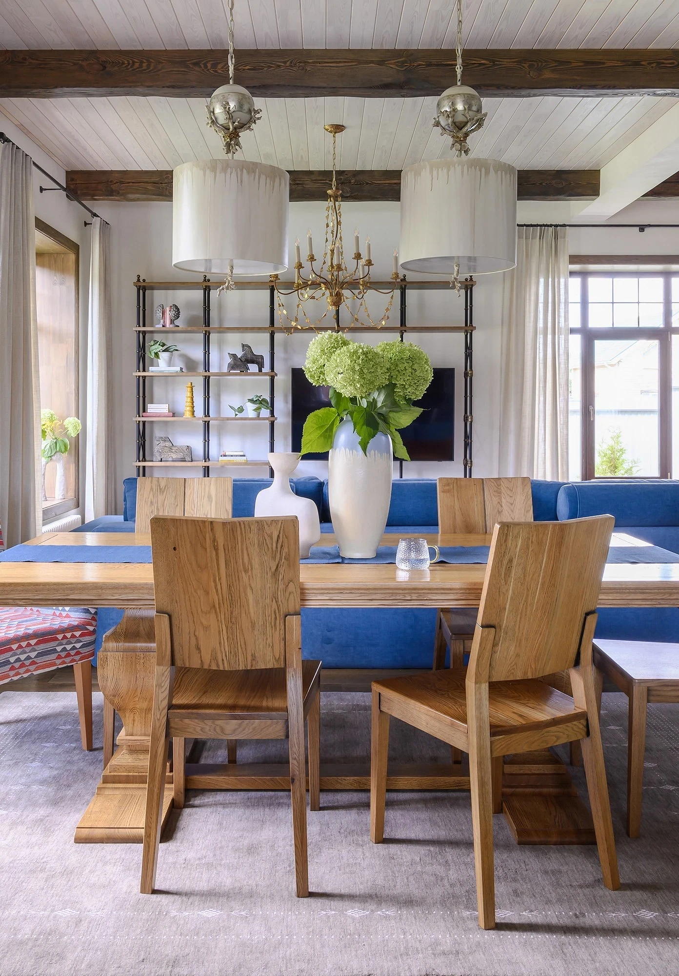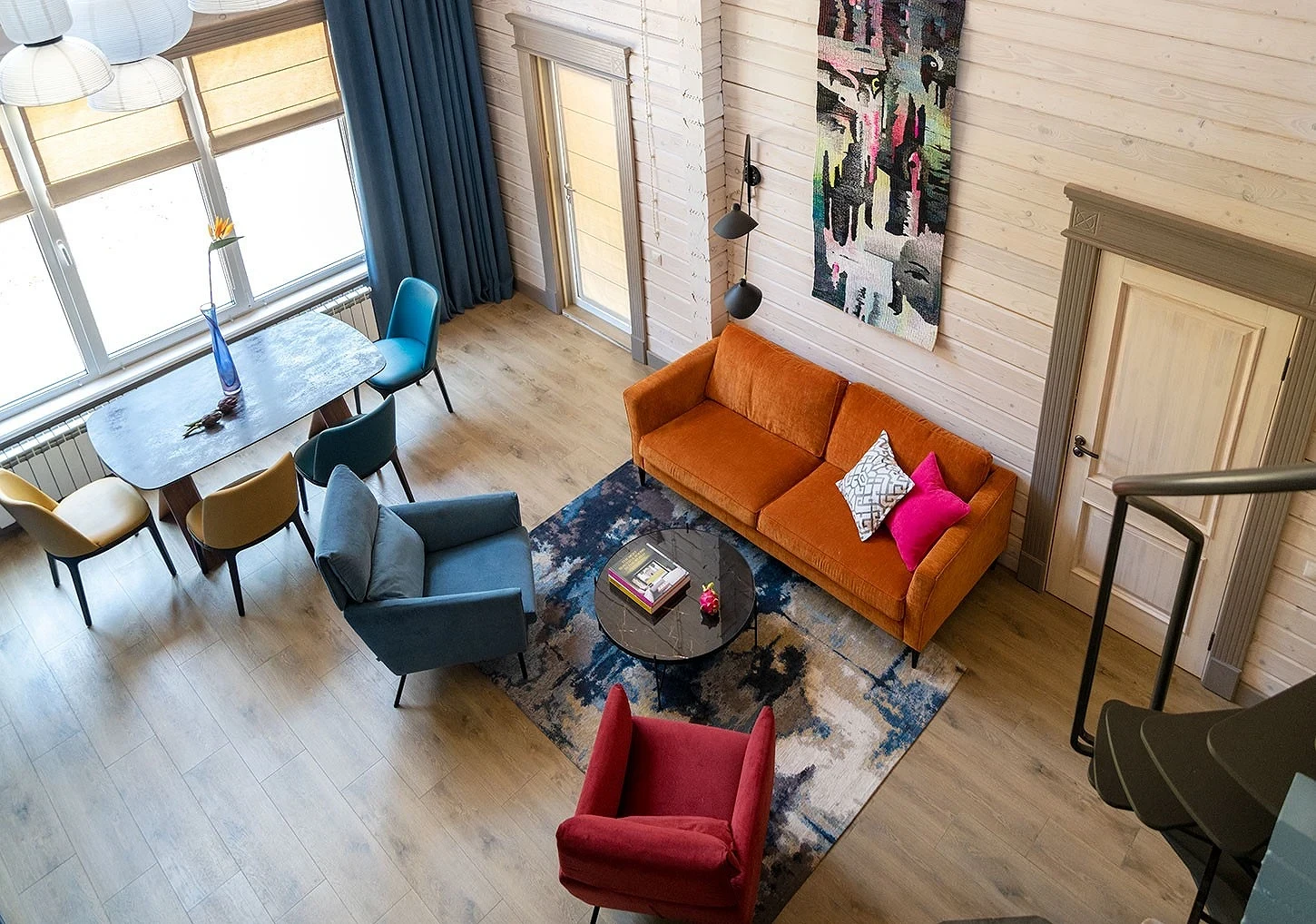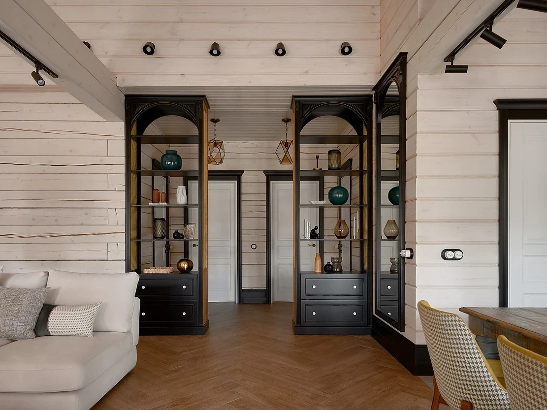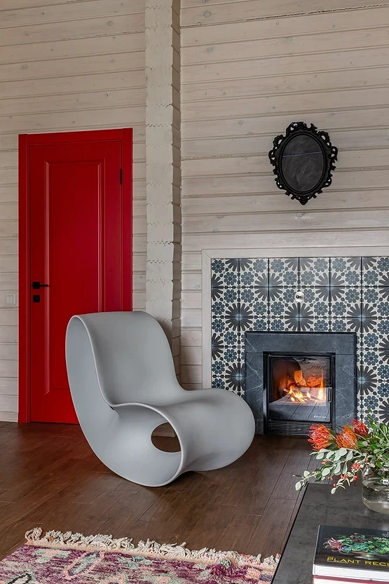 У деревянного дома — уникальный набор качеств. Экология в нем сочетается с удобством, он одновременно уютный и естественный, но при этом, если выбран актуальный стиль, не выглядит старомодным или слишком простым. Натуральная древесина обладает красивым рисунком волокон, который можно сделать центральной частью дизайна. Благодаря интересной фактуре стены, пол и потолок можно не отделывать дополнительно другими материалами, а оставить «как есть», покрыв лаком или маслом для защиты. Впрочем, если такой подход кажется слишком банальным, дерево легко можно покрасить в любой выбранный цвет.