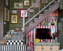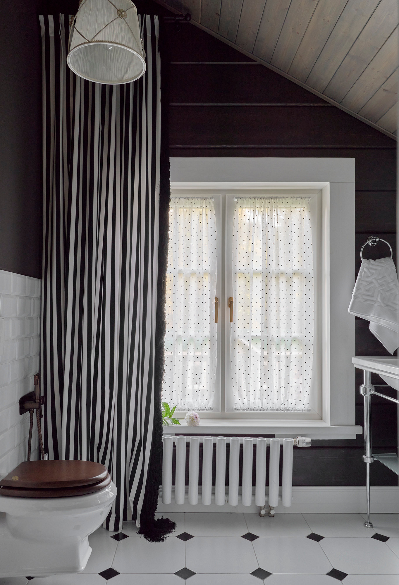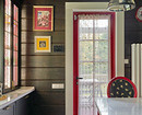 Кухня с окном — мечта городского жителя и одно из приятных достоинств загородного дома. Здесь она оформлена в насыщенном черном цвете, с атмосферой, напоминающей готический роман, — еще одно смелое решение этого интерьера, подходящее для «дома выходного дня». Чтобы избежать мрачности, такое помещение нуждается в ярких аксессуарах, и здесь они есть: ярко-красные и в характерную черно-белую клетку.