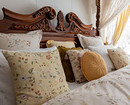 Отдельного внимание заслуживает световой декор. Среди домашних светильников тоже есть винтажные находки. Например, дореволюционный абажур в спальне. А над обеденным столом — текстильный абажур, который создает невероятно уютную атмосферу.
