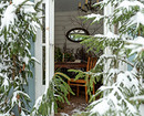 Позаботились и об уличном освещении. «Яблони рядом с домом окутаны тончайшими гирляндами, которые светятся, как мириады маленьких светлячков в любое время года, над уличным столом повесили теплые ретрогирлянды между яблоневыми деревьями, и получился уютный дворик перед домом прямо в саду, в котором хочется сидеть за большим столом, вести непринужденный беседы и наслаждаться каждым вечером. Мы также украсили фасады дома светящимися гирляндами, что дополнило сказочный образ дома»,— рассказывают хозяева.