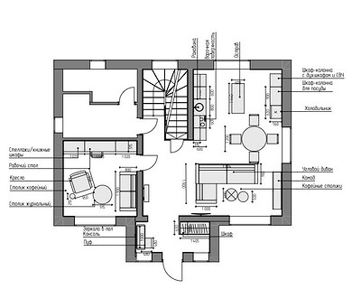 Планировку двухэтажного дома не меняли. На первом этаже расположены кухня-гостиная, кабинет, санузел с котельной. При входе — изолированная от общего пространства прихожая. Второй этаж — со спальнями, там — две детские, хозяйская спальня и ванная комната, также гардеробная.