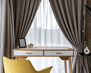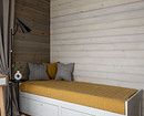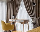 Во второй, маленькой комнате — кровать-кушетка с выдвижными ящиками для хранения, рабочий стол и шкаф для одежды.