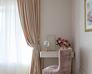 В спальне хозяев — отдельная гардеробная, поэтому не было необходимости ставить шкафы в комнате. Предусмотрели туалетный столик и пару прикроватных тумбочек.